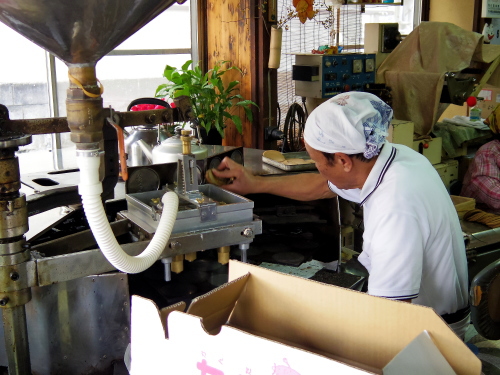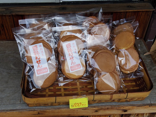 | 焼き上がりのせんべい「豆乳おせん」。絶品です。 |
