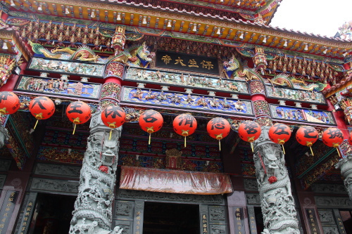 | 高雄ナンバー1の観光スポットでありパワースポットの「龍虎塔」から道を挟んだ目の前に慈済宮があります。この慈済宮に祀られているのは保生大帝という医者が祀られており、健康祈願を参拝する廟になります。「鳳山県志」の記載によると慈済宮は1719年に建てられてから300年近くの歴史があります。廟はもともと別の場所にありましたが、日本時代に左営軍港建設にあたり移転することになり、1959年に現在の蓮地路に祀られました。中は立派な装飾で素晴らしいものがあります。 |