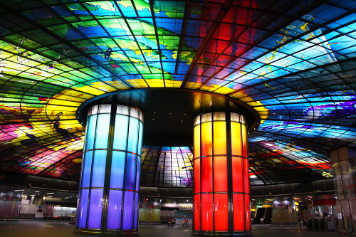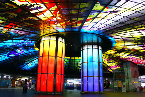 高雄捷運美麗島站は世界で2番目に美しい地下鉄の駅と言われており、世界最大のステンドグラスアートである「光之穹頂(光のドーム)」があります。光のドームはイタリアの著名なステンドグラスアートの芸術家ナルシサス・クアグリアータが、4年半の歳月をかけて製作2本の柱を支柱として、ドーム型に4500枚のステンドグラスが全て手作業ではめ込まれています。