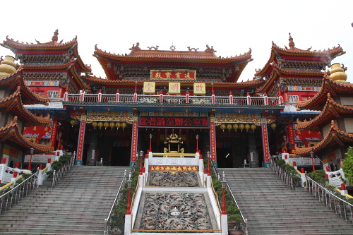 | 左営啓明堂は1899年に建てられた「明徳堂」が起こりで、1903年に名前が「啓明堂」と改められた廟で、蓮池潭風景区では最大の規模を誇る廟です。現在の啓明堂は1976年にできたもので、荘厳な中国宮殿様式の廟内には、武聖關公(三国志の関羽)・文聖孔子を主神として祀られています。 |
