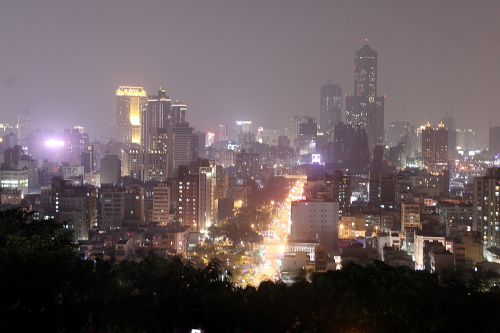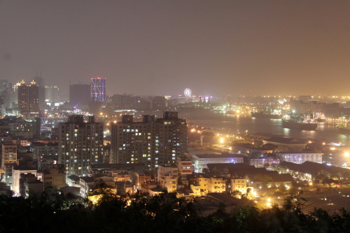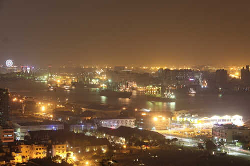 | 展望デッキから高雄市の夜景を望む。 |