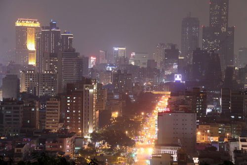 | 高雄市忠烈祠の階段から夜景を望む。 |