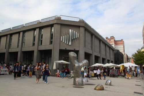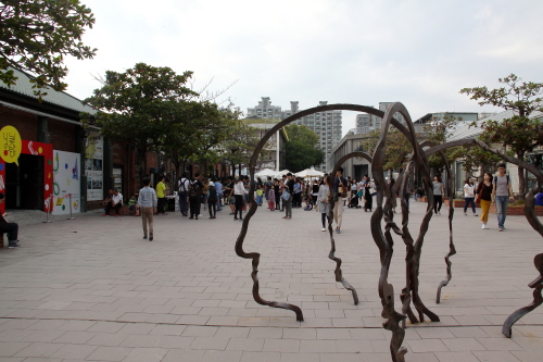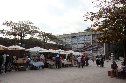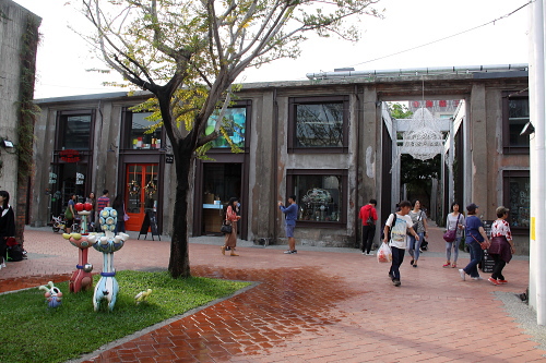 | 駁二アート特区は長い間閉鎖されていた倉庫が芸術と文化のレジャー展覧空間になったもので、「前衛」「実験」「イノベーション」をテーマに旧倉庫街をリノベーションした複合アートスペースであり、東から順に大義街の「大義倉庫群」大勇路の「大勇倉庫群」蓬莱路の「蓬莱倉庫群」の三つに大別され、旧打狗駅故事館を擁する「哈瑪星鉄道文化園区」とともに哈瑪星エリアの一大観光拠点を形成しています。フリーマーケットの他様々な店舗があり、沢山の人で賑わうスポットです。 駁二アート特区はかなり広いエリアになるので、訪問する際はレンタサイクルで回るのがベストです。 |