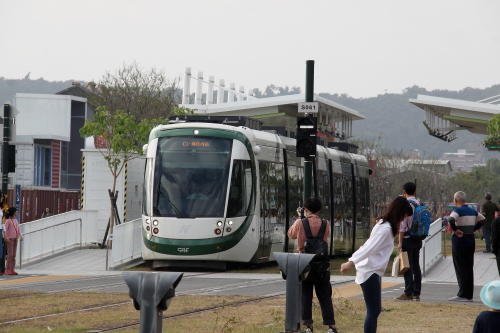 | 駁二アート特区を走るライトレール。 |