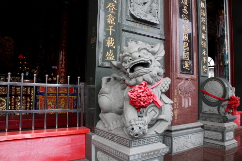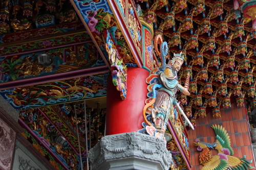 仙樹三山宮は左営孔子廟の近くにあり、独山・明山・巾山の神様である三山国王を祀った廟です。派手で非常に細かな装飾は台湾らしく美しいもので比較的新しい廟のようです。仙樹三山宮の前には市場があり活気があります。
