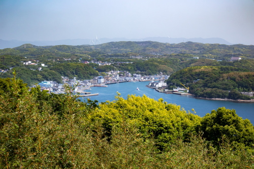 | 風の見える丘公園展望スペースから呼子の町並みを見る。 |