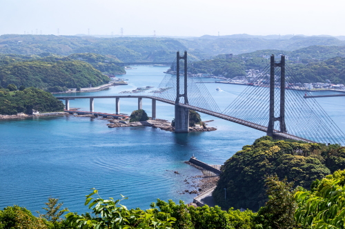 | 風の見える丘公園展望スペースから呼子大橋を見る。 |