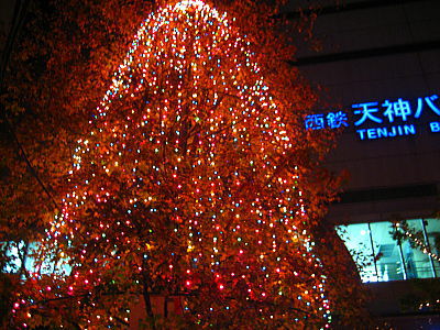 九州最大の集客力を誇る天神地区で最も目立つイルミネーションスポット警固公園のイルミネーションです。毎年開催されています。この日はイルミネーションを見に来ていた人は老若男女問わず多かったです。