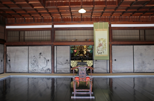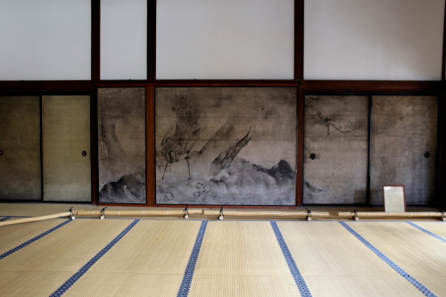 | 方丈書院の間・紙本墨画花鳥図。国重要文化財。 |
