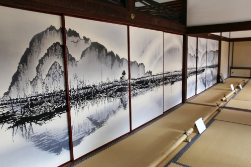 | 方丈檀那の間・紙本墨画山水図。国重要文化財。 |
