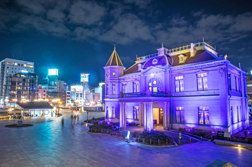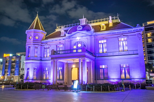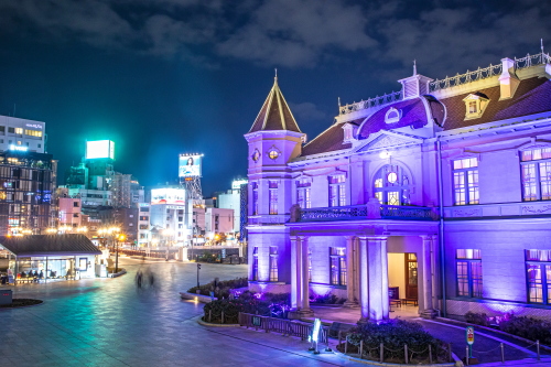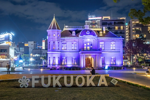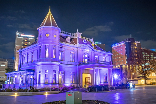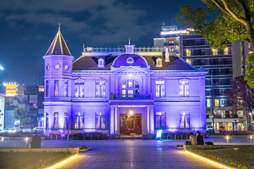 旧福岡県公会堂貴賓館パープルライトアップ(福岡市中央区)