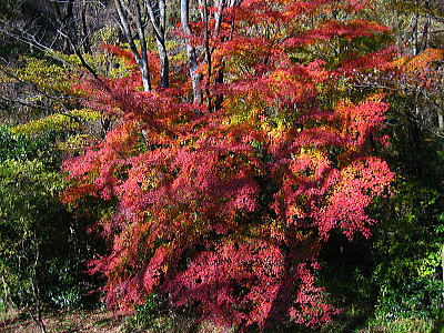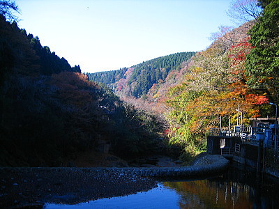 | 紅葉ヶ瀬にて。菊池渓谷で紅葉を眺めるにはこの場所がベストです。 |
