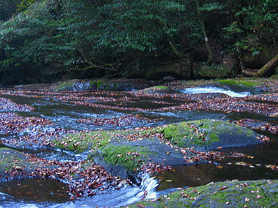 | 標高500m〜800mで、天然林で生い茂っている渓谷です。 |
