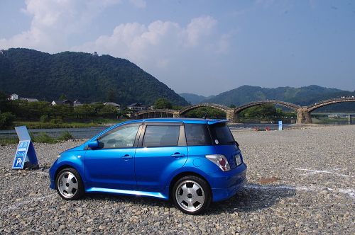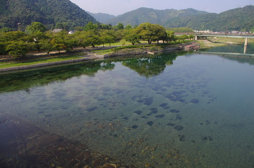 | 錦川河畔の駐車場。普通車は無料で駐車できます。 |
