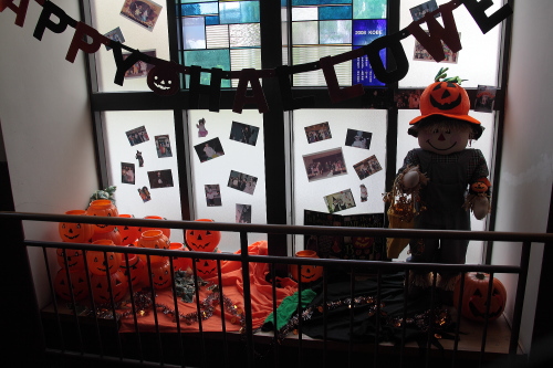 | 階段の途中にある手作り感があるモニュメント。 |