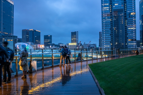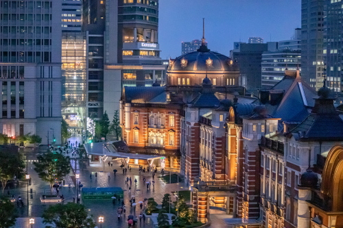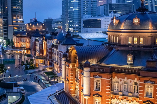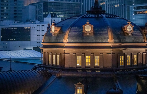 | 東京駅丸の内駅舎南西側にある超高層ビル・JPタワーにあるKITTE丸の内の6階にKITTEガーデンと呼ばれる展望広場があり、雰囲気が非常に良く赤レンガの建築物である東京駅のライトアップと丸の内の高層ビル群の灯り・東京駅に行きかう電車を見る事が出来ます。またこのKITTEガーデンは無料で入る事が出来ます。 尚、カメラで撮影する際は三脚・一脚は使用不可で、柵からはみ出てからの撮影は禁止されています。監察員が常時いますので注意を受けます。 |