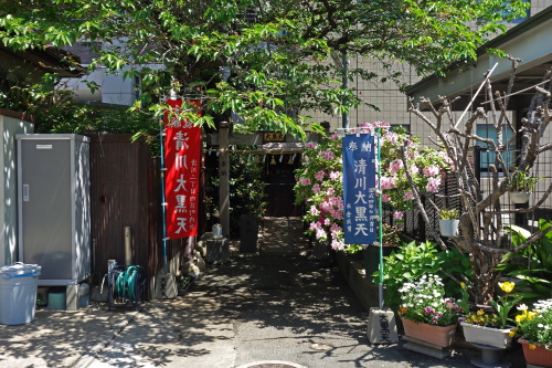 福岡市中央区清川の入り込んだ住宅地にひっそりと佇む清川大黒天は、今では繁華街になっている清川地区が昔、水田が広がる江戸時代には恵比須と共に田の神様として多くの農民に崇拝されていたと伝えられています。春になると樹齢70年の一本桜が見事に咲くらしく、密かな桜観賞スポットにもなっているようです。ちなみに御神徳は願い事が何でも叶うらしいです。