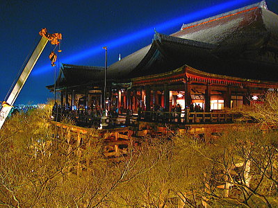 | 本堂・舞台・三重塔と京都の夜景。 |
