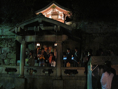 | 音羽の滝。ここで水を頂くと長寿になるそうです。 |