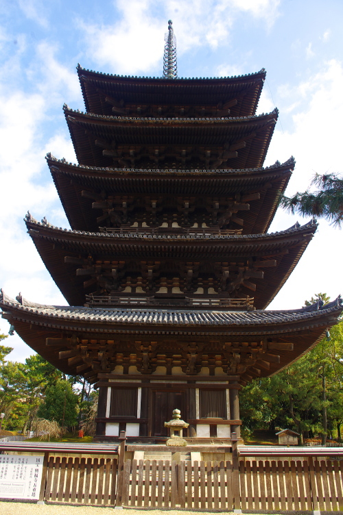 | 近鉄奈良駅から徒歩で約10分弱で到着する興福寺は、国の名勝に指定されている奈良公園の中にあり、最盛期には寺の建物が175もあったとされる大寺です。創建は平城遷都と同じ年の710年とされていて、現在では国宝である五重塔や東金堂や釈迦像などがあり、重要文化財も多数あります。また世界遺産にも登録されており、日本を代表する観光スポットとも言えます。 |