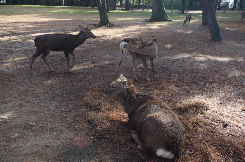| 奈良公園内に生息する鹿。春日大社の神使とされています。 |