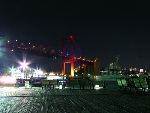 | 旧古河鉱業若松ビル前の若松桟橋・若戸大橋を望む。 |
