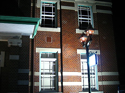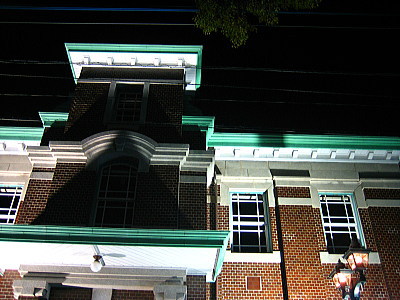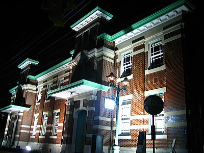 | ライトアップされた旧古賀銀行。大正時代のモダンな雰囲気が漂います。 |