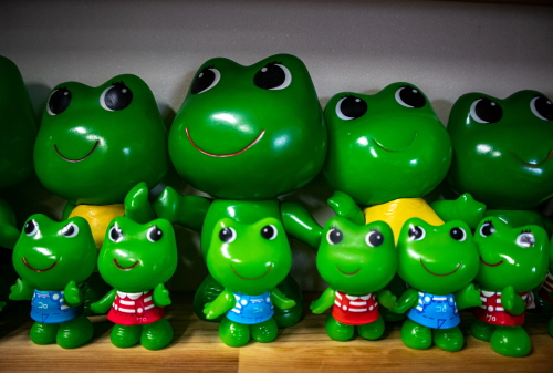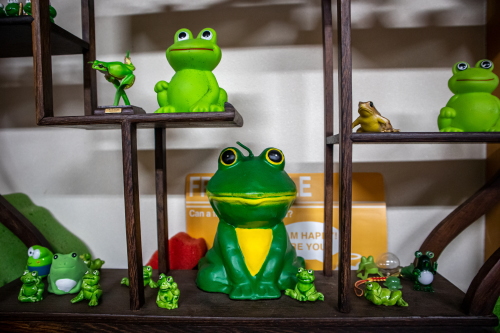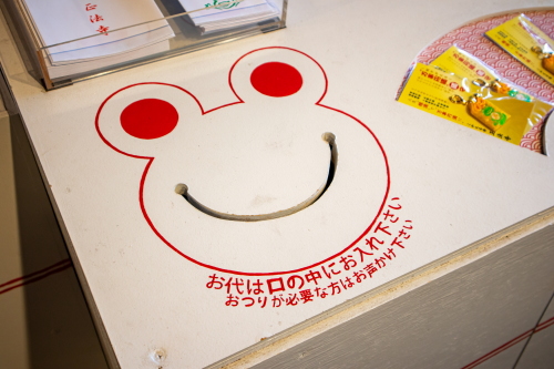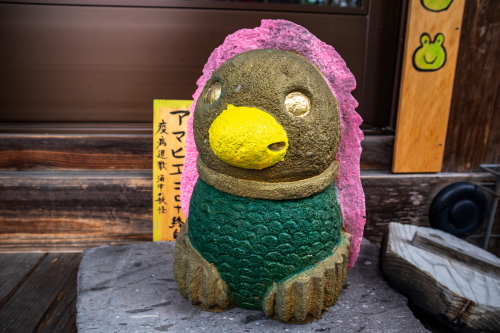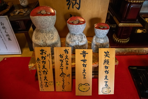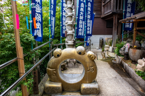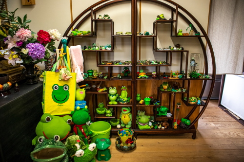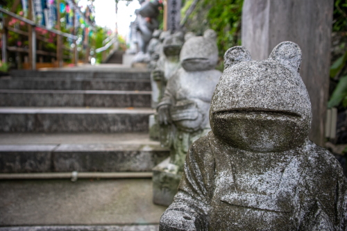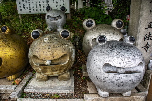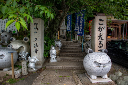 | 正法寺入口。かえるのオブジェが置かれています。 |