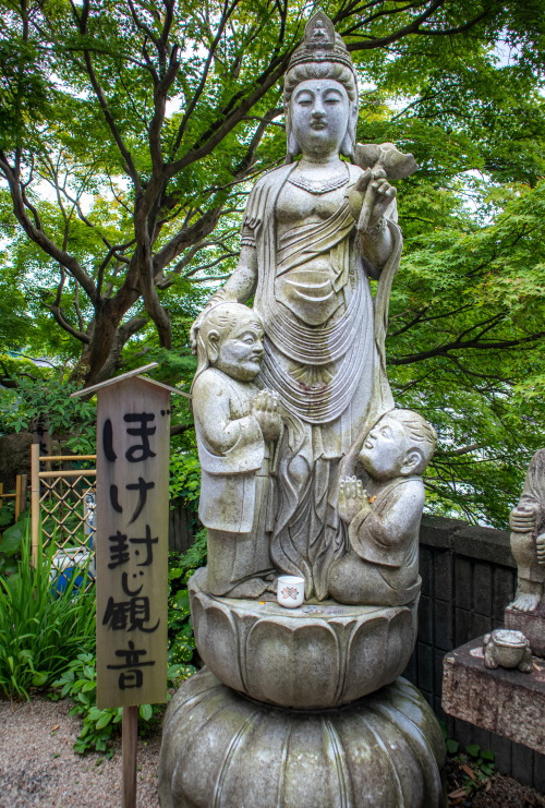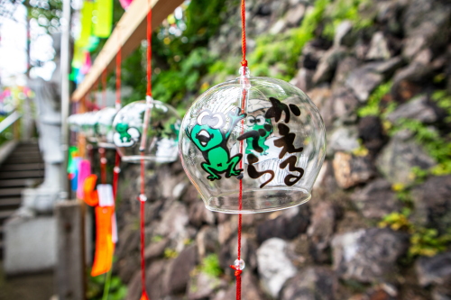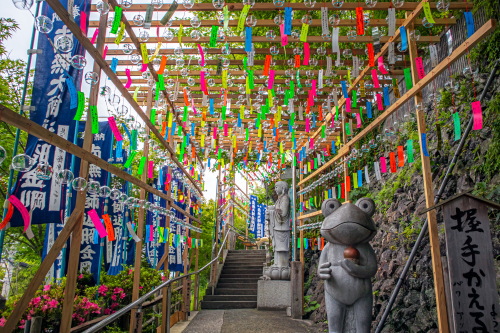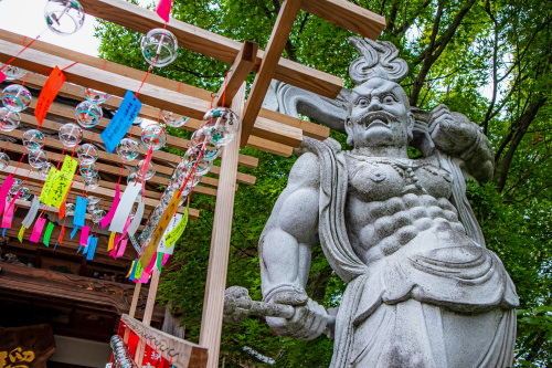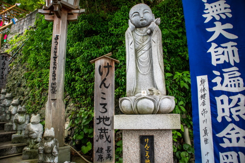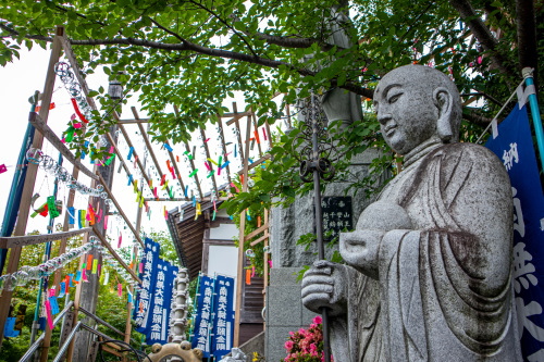 | 正法寺参道にある地蔵菩薩像と風鈴。 |