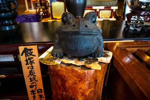 | 飯塚市南部にある真言宗御室派の寺院・瑠璃山正法寺は別名「こがえるでら」と呼ばれており、境内や建物内には沢山のかえるが置かれています。正法寺の住職は小郡市にある「かえる寺・如意輪寺」の御子息で如意輪寺を「親かえる寺」・正法寺を「子かえる寺」と位置づけており、両方参拝する事で「万事縁満」になるとされています。如意輪寺同様、沢山のかえるが置かれている「かえる部屋」もあります。 昔は1913年に開創された穂波四国八十八箇所霊場の第47番札所・八坂寺であったが1947年に現在の正法寺に改称され、2007年には現住職により老朽化した本堂や庫理等を建て替えて2009年に落慶しました。今では九州八十八箇所百八霊場の第93番札所として参拝客が訪れています。また初夏から初秋にかけて参道には沢山の風鈴が飾られます。 御本尊:薬師瑠璃光如来 駐車場:有り(無料) |