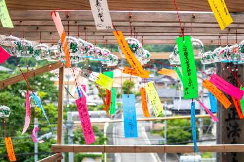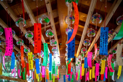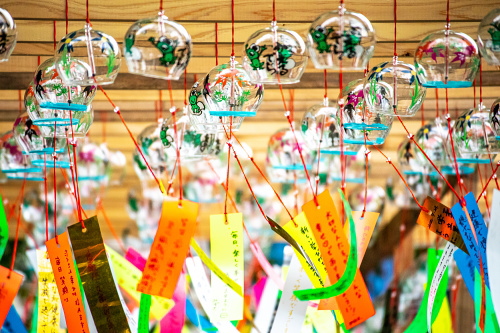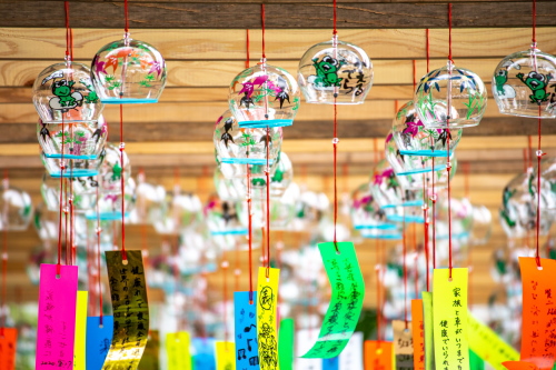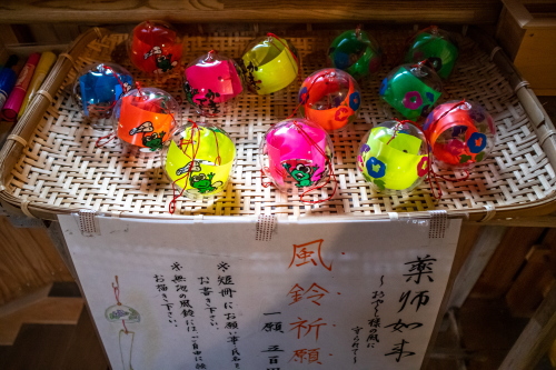 | 本堂からかえる部屋に行く通路にある風鈴。 |