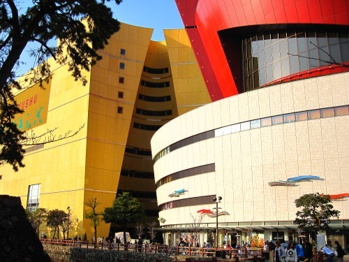 小倉城に対面するリバーウォーク北九州。