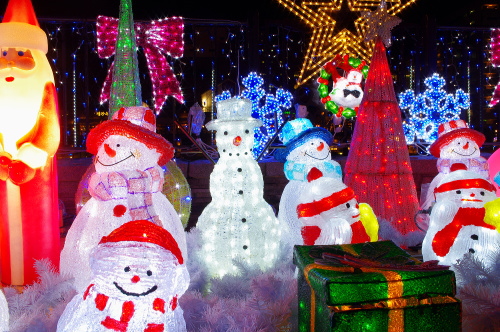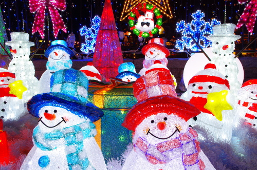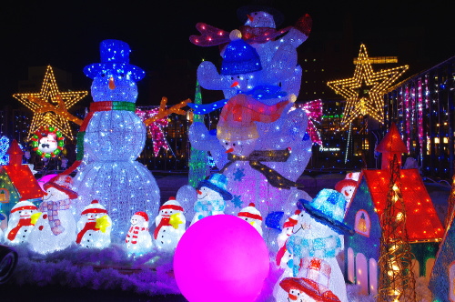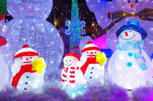 | 紫川沿いにある雪だるまのイルミネーション。 |