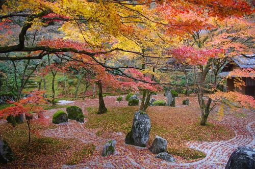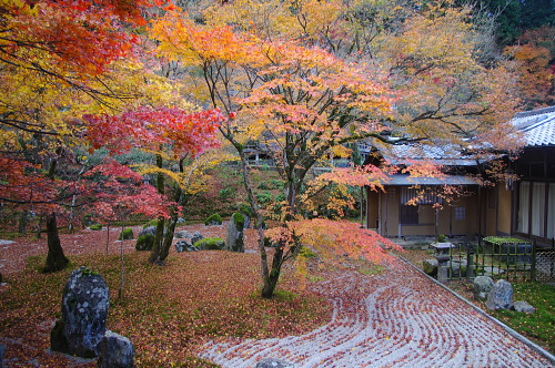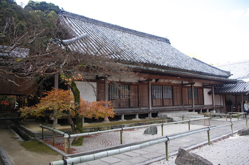 | 太宰府天満宮の近くにある光明善寺は、1273年に鉄牛円心により建立・開山した寺院で、1616年に再興、1856年に再営された太宰府天満宮の結縁寺です。また別名「苔寺」とも呼ばれ、その名の通り見事な庭園が裏庭にあります。紅葉の時期になると、また一際風情を感じる事が出来ます。 |
