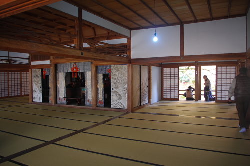 | 本堂から裏庭・一滴海庭を眺める。 |