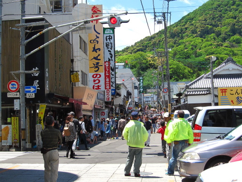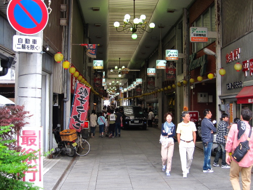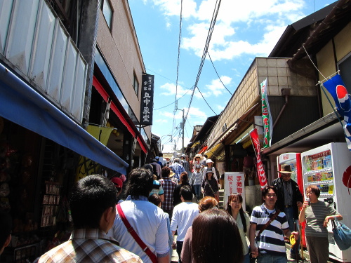 | 参道沿いの商店街。たくさんの観光客で賑わいます。 |