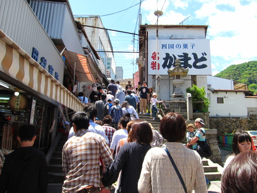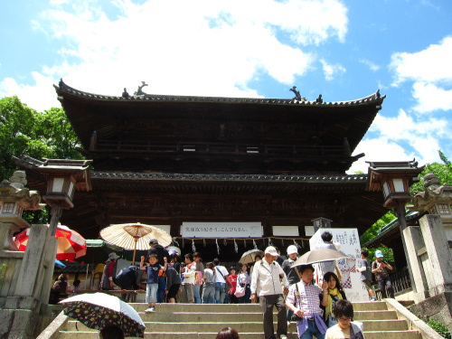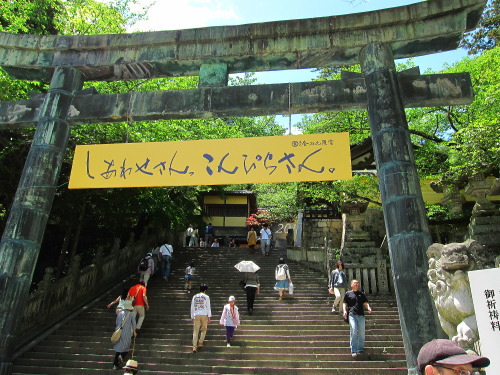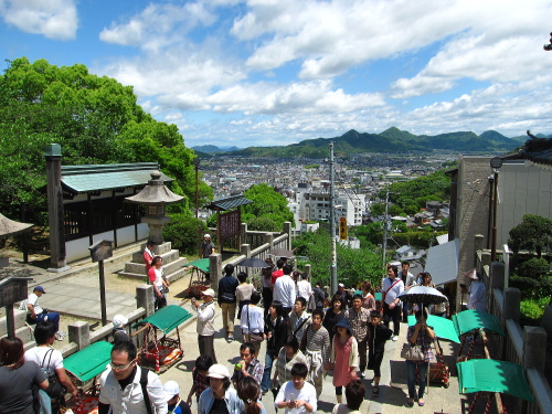| 琴平町にある金刀比羅宮は全国の金刀比羅宮の総本山で、海上交通の神として厚い信仰があります。長く続く石段の参道は有名で多くの観光客がおと連れる観光スポットでもあります。奥社までは1368段の石段があり、参道沿いには商店街が形成されていて、楽しめるスポットにもなっています。 |