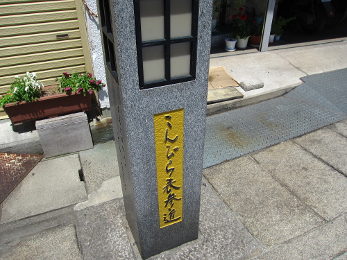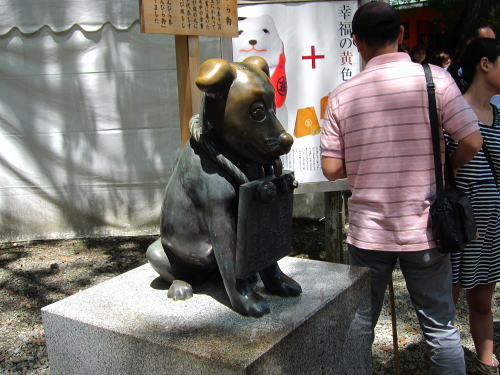 | 桜馬場西詰銅鳥居にあるこんぴら狗の銅像。 |