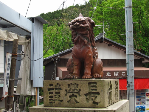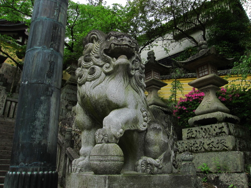| 一之坂鳥居にある備前焼狛犬。重要有形民俗文化財。 |