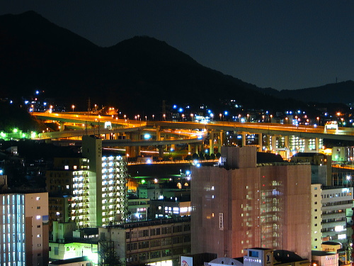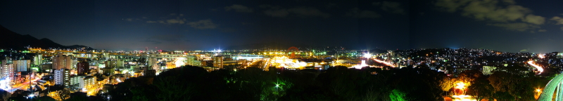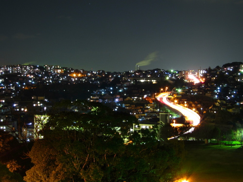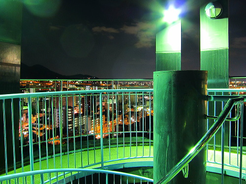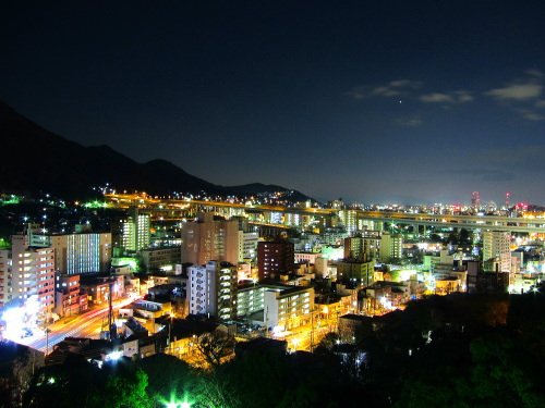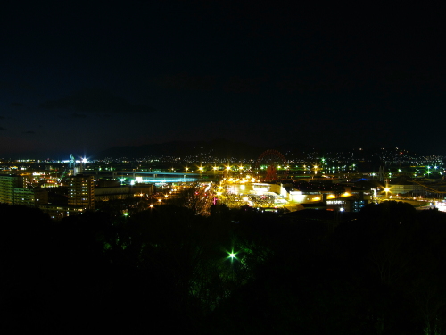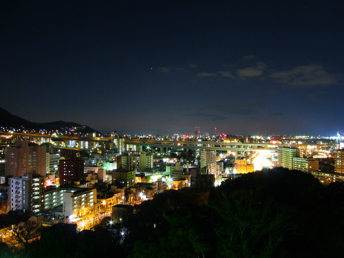 | 北九州市八幡東区の中心街・八幡地区の東の小高い丘にある公園で、八幡らしく、製鉄所の高炉を模した展望台があります。展望台からは八幡の繁華街・中央町や洞海湾・戸畑の住宅街の夜景を観賞できます。また、公園の雰囲気は非常によく、外灯もあるため懐中電灯は不要です。車は公園に併設されている体育館の駐車場に止めるのがベターです。 |