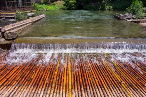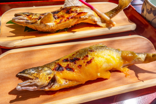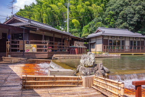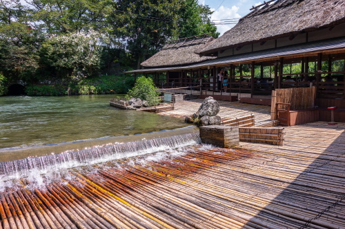 | 甲佐町にある甲佐町やな場は、甲佐町の建物で民間業者が鮎料理を提供してくれる飲食店施設です。やな場とは、竹で編んだ簀に落ちてくる鮎を捕る梁(やな)漁の事ですが、元々は1633年に肥後藩主の細川忠利侯の命によって造られた水田用水調節の場でした。その後、代々の藩主が毎年とれたての落ち鮎を楽しみにご来遊される場所として、広く知られるようになりました。熊本では唯一のやなで、非常に雰囲気がいい施設です。 なお、甲佐町やな場は人気があるので、祝祭日には予約不可ですので、時間に余裕を持って訪問されるのをおススメします。 営業期間:6月1日〜10月31日 営業時間:11:00〜21:00 |