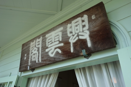 | 2階ベランダにある興雲閣の額。 |