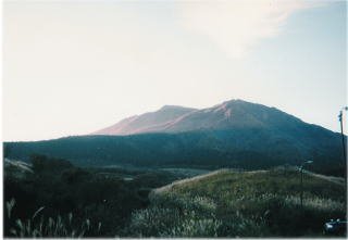 久住高原から大きく見える久住山です。登山客が多い山です。この久住山の山頂付近はミヤマキリシマがきれいに咲きます。