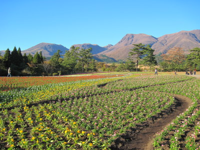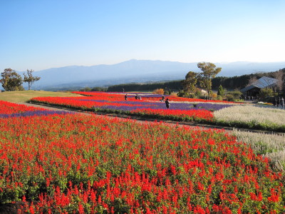 | くじゅう花公園は久住高原にあり、20万平方メートルの敷地には、春から秋までいろんな花を楽しむ事ができます。園内には、ショップなどがあり、お買い物やお食事もできるようになっています。園内の花はスタッフの方々が非常に手を入れていて、咲いている花々はとても美しいです。 |