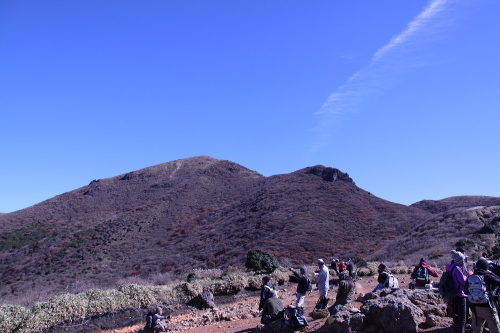 | 登山道から阿蘇山を眺める。 |