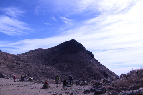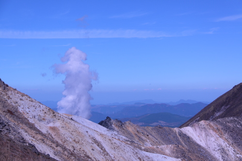 | 硫黄山の噴煙を拡大。硫黄のにおいが充満しています。 |