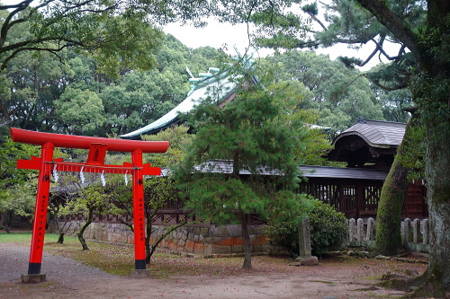 | 本丸御殿跡前にある小早川神社。元城主・毛利秀包が祭神。 |