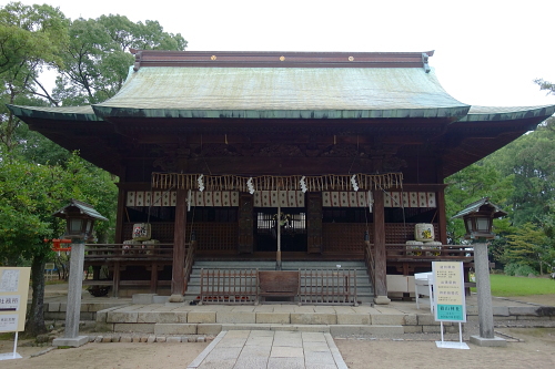 | 久留米市中心部から北に、日本100名城に指定されている久留米城跡があります。室町時代後期にこの地の土豪が篠原城と称した砦程度のものを築いたのが始まりとされ、柳川藩・田中氏の支城を経て江戸時代には明治維新まで有馬氏の居城になりました。明治維新後に久留米城は解体されましたが、本丸御殿跡地に久留米藩歴代藩主である有馬氏の五柱の神様を祭神とする篠山神社が建造されています。 |