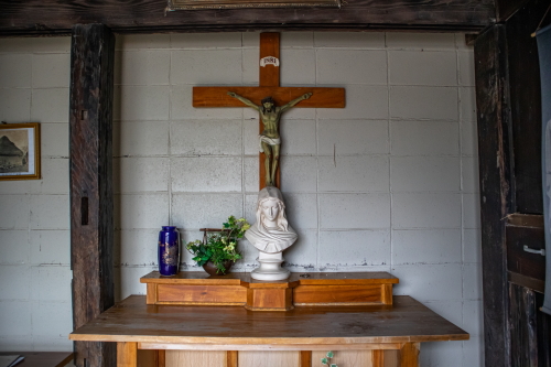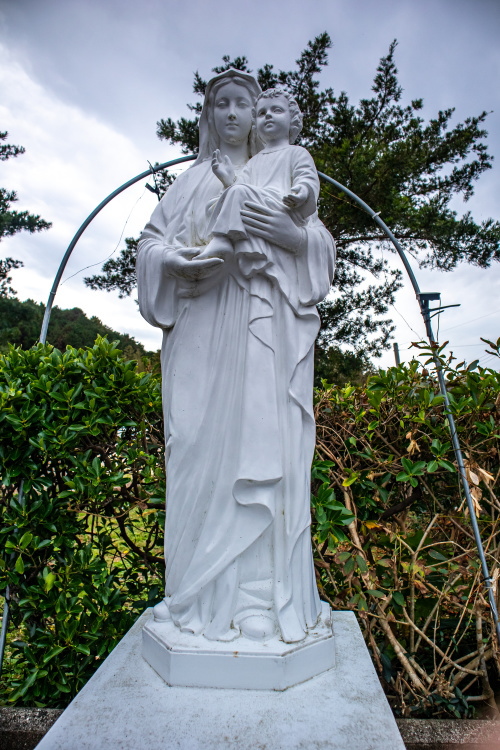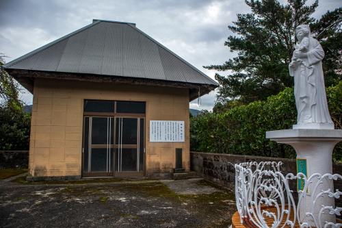 | 長崎県五島市の北部岐宿町にある楠原牢屋跡はカトリック楠原教会の近くにあり、明治初期にキリシタン迫害の為の牢屋として使われた民家を復元したものです。楠原地区の35名・水の浦地区の18名が入牢され、責苦に耐えた歴史を後世に伝える為に平成8年に復元されました。敷地には「信仰の自由100周年記念祭」の時に立てられた記念碑「祈りの像」があり、信仰による迫害・悲劇を二度と生まない様にとのメッセージを感じる場所でもあります。 駐車場:無 入館料:無料 |