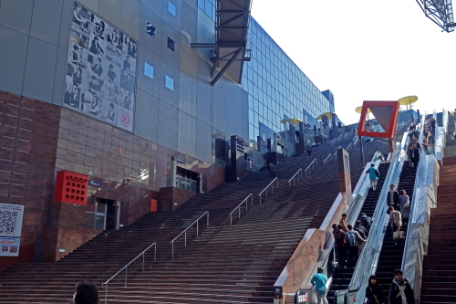 京都観光の拠点にもなっており、JRの他には近鉄・地下鉄の駅もあり、烏丸口前はバスターミナルになっており、観光客を始め沢山の乗客で賑わいます。 |